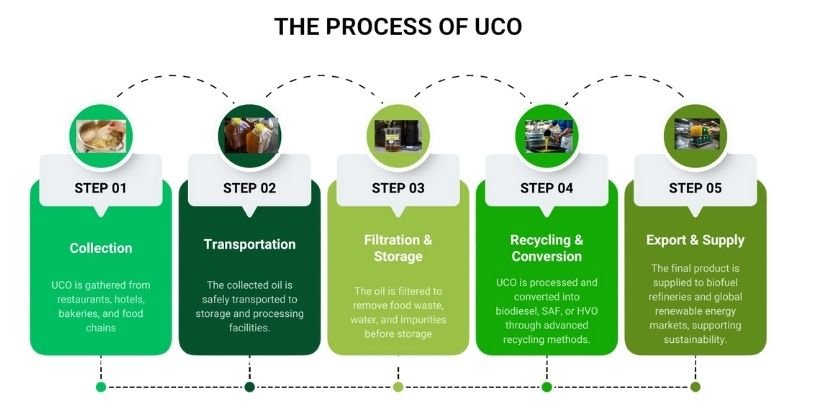 We supply over 500 tons of UCO monthly to biofuel and renewable fuel refineries worldwide, supporting the production of biodiesel, Sustainable Aviation Fuel (SAF), and other sustainable fuels.